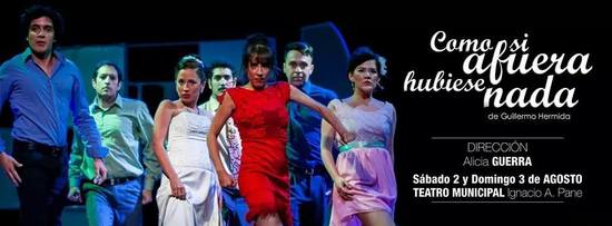 Este sábado 2 agosto a las 21:00 y el domingo 3 a las 20:00 se presenta la obra teatral “Como si afuera hubiese nada” del autor argentino Guillermo Herminda, con la dirección de Alicia Guerra.La obra narra la historia de un casamiento dentro de un grupo de amigos desde la perspectiva de cada uno de los personajes, que a su vez, atraviesan por distintos tipos de crisis emocionales a causa de la soledad, frustración y resignación.El elenco está conformado por Paola Irún, Jorge Báez, Hernán Melgarejo, Ariel Galeano, Natalia Patricia Santos, Diego Mongelós, Pilar Ortiz y Fabián Leguizamón. Las entradas para estas dos únicas funciones están disponibles en Ticketea Paraguay a G. 30.000.